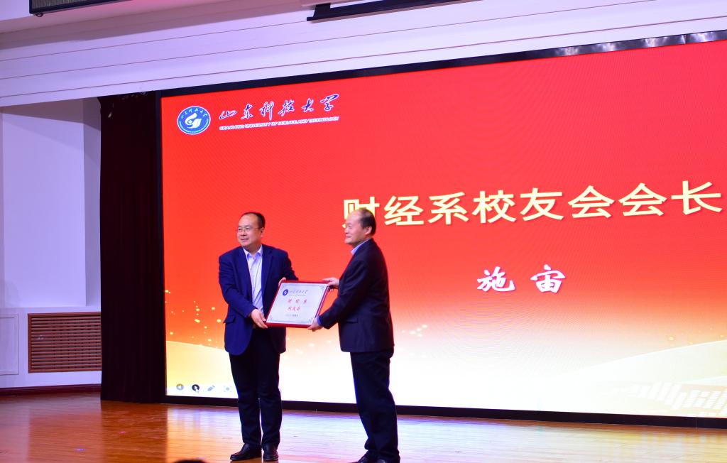 向财经系校友会会长施宙授牌
