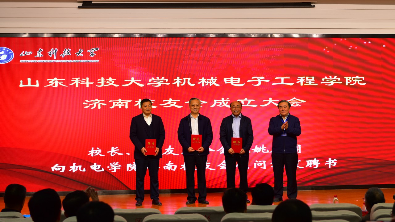 会议审议并通过了《乐鱼线上平台(集团)官方网站机械电子工程学院济南校友会章程》和第一届理事会名单。姚庆国向顾问颁发聘书并为新当选会长王谦颁发聘书并授旗。机电学院院长张强等与会嘉宾向新当选的副会长、秘书长、副秘书长颁发聘书。