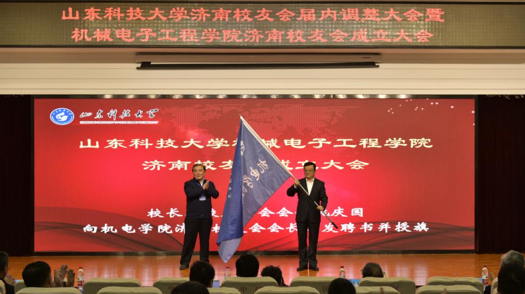 姚庆国为机电学院济南校友会授旗