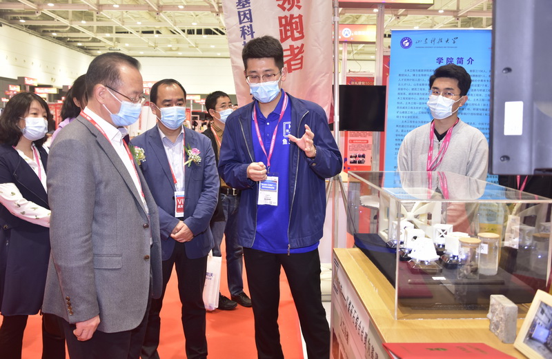 本届“高博会”期间,首届高等学校科技创新大会同期举办。“献礼建党100周年”高校科技创新成果展是创新大会的重要板块,筛选了来自全国61所高校的336个科技创新成果进行展出,乐鱼线上平台(集团)官方网站科技处精心组织学校相关成果参会,筛选了井巷喷浆粉尘污染防治关键技术及装备、铝离子电池等12项科技成果参展,基本涵盖了所有八大展区,通过设备实物展台展出,多媒体设备播放、展板展示等多样化的展示形式参展,生动直观地将学校科技成果进行呈现,吸引了众多观众关注。