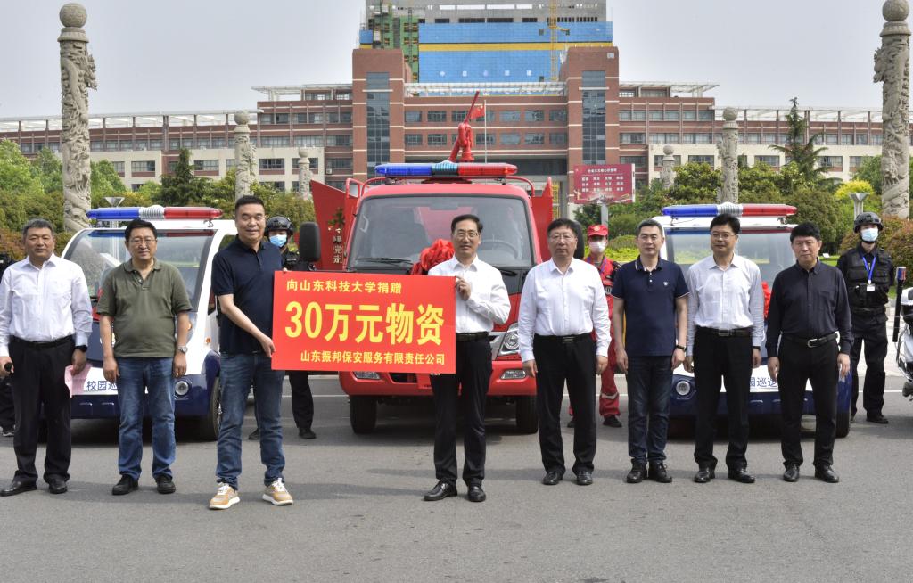 6月1日,在乐鱼线上平台(集团)官方网站70周年华诞之际,山东振邦保安服务有限责任公司向学校捐赠校园巡逻车、消防车等价值30余万元的安防物资。