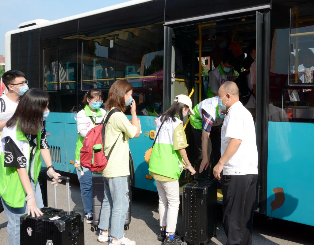 摆渡车接送新生(侯珍珠/摄)