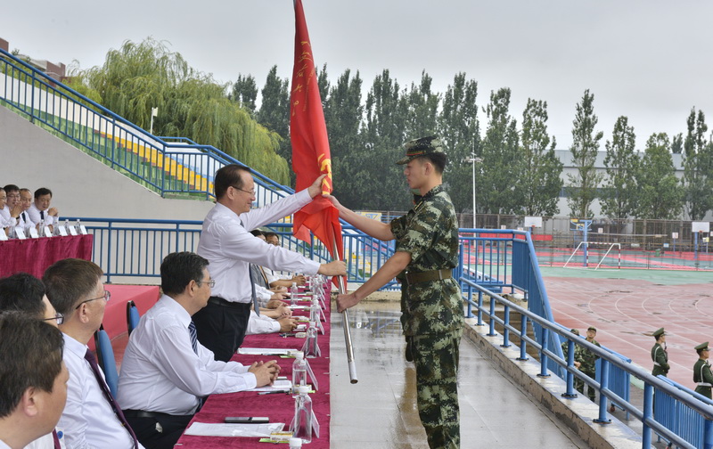 校领导、校党委领导班子成员罗公利、姚庆国、尹华、夏侯雪娇、张英杰、李玉霞、张建、李克周、陈涛出席典礼。典礼上,校党委书记罗公利向军训旅授旗,校长姚庆国讲话,校党委副书记尹华宣读军训决定和军训旅领导成员名单。典礼由党委学校办公室主任徐方全主持。