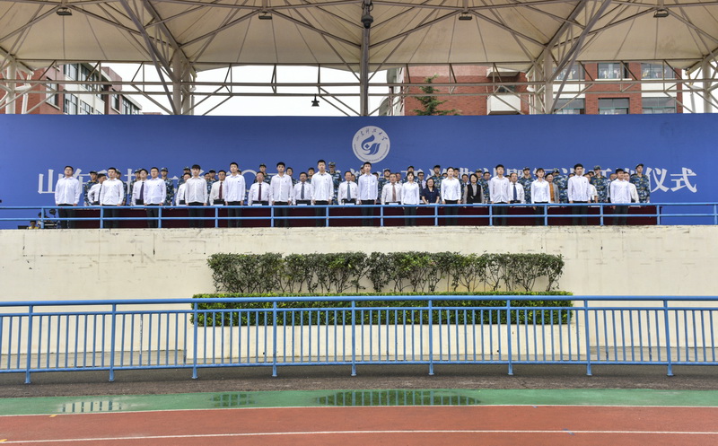 学校有关部门、青岛校区各学院主要负责人,学生工作干部、教师代表、军训教官及2021级全体新生参加了典礼。