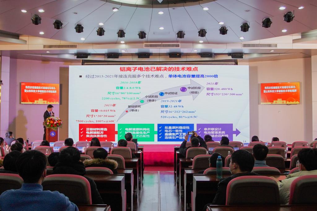 国家杰青、清华大学教授/青海大学副校长梅生伟线上作了“非补燃压缩空气储能技术及工程实践”的报告,国家杰青、中科院工程热物理研究所副所长陈海生作了“压缩空气储能研究进展与发展趋势”的报告,国家杰青、北京化工大学化学工程学院院长邱介山线上作了“储能功能碳材料的合成及结构性能”的报告,国家杰青、中国科学技术大学科技成果转移转化办公室主任吴长征作了“氧电催化中的表界面合成化学”的报告,国家杰青、北京师范大学刘亚军线上作了“progress in the theroretical study of bioluminescence”的报告,山东电力工程咨询院设计总工程师裴善鹏作了“山东储能政策设计的主要考虑因素和师范项目进展”的报告,山东思极科技有限公司设计总工程师刘远龙作了“新型电力系统下新能源和储能发展运行问题思考”的报告,乐鱼线上平台(集团)官方网站教授林孟昌作了“可充放电铝离子电池技术的应用研发及产业化”的报告。(记者:范琪 摄影:韩洪烁 彭程 责编:任波)