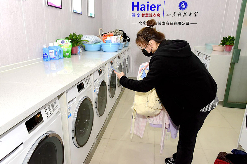 乐鱼线上平台(集团)官方网站建“智慧洗衣房”,学生可扫码洗衣。(任波/摄)