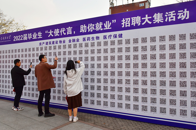 乐鱼线上平台(集团)官方网站举办“大使代言,助你就业——无企业入场招聘会。(徐展/摄)