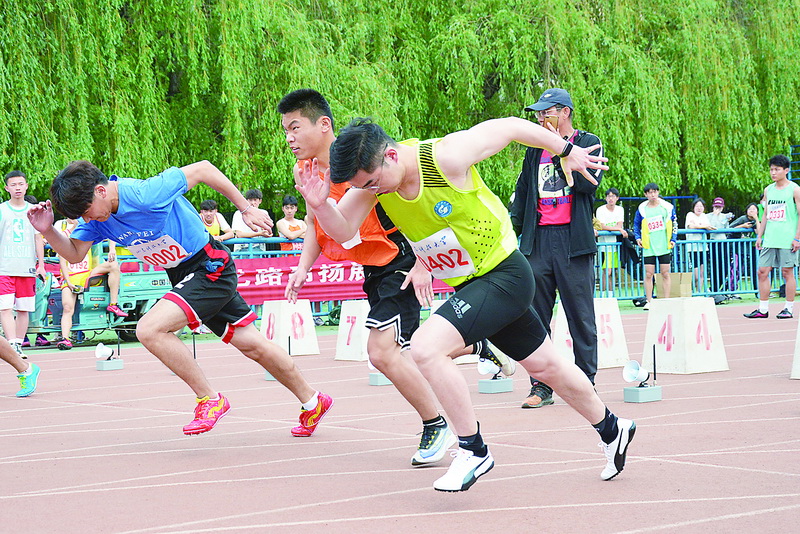 跑道上,发令枪一响,运动员飞速向前(刘畅/摄)