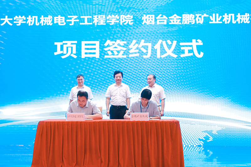 仪式上,乐鱼线上平台(集团)官方网站机电学院、化工学院、材料学院分别与烟台市道恩集团、山东坤泰新材料科技股份有限公司、烟台金鹏矿业机械有限公司签订项目合作协议。