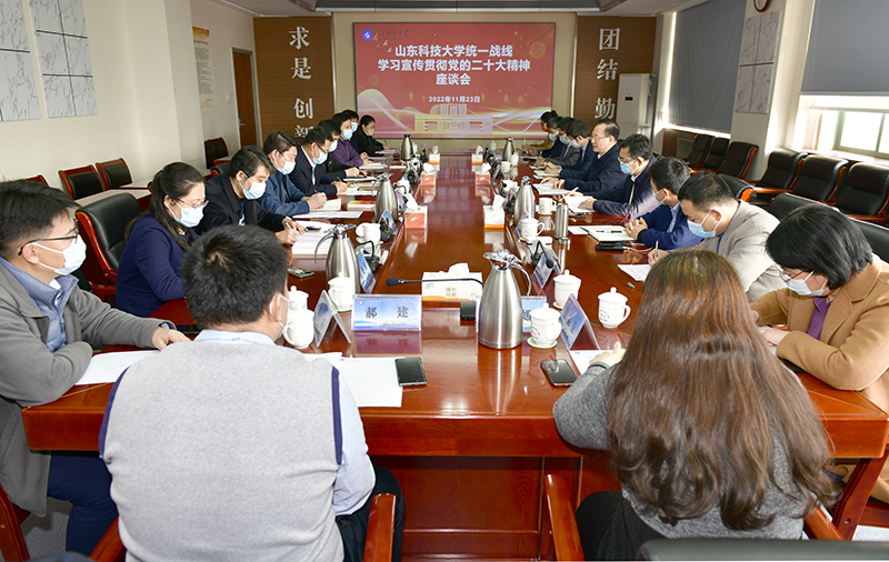 11月23日,党的二十大代表、省属高校学习贯彻党的二十大精神宣讲团成员、校党委书记罗公利与学校统一战线代表人士座谈交流,宣讲党的二十大精神,分享自己参加大会的学习体会与收获。