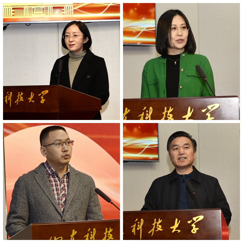 计算机学院辅导员王春宇、自动化学院教师刘春晖、文法学院党委书记潘伟国、研究生工作部部长韩作振分别从提升思想政治教育实效性、全方位开展课程思政建设、培育具有科大特色的“四个精英”高素质法治人才、探索研究生思政教育新模式等方面做了交流发言,展示了学校思想政治教育工作取得的成果、经验和思考。