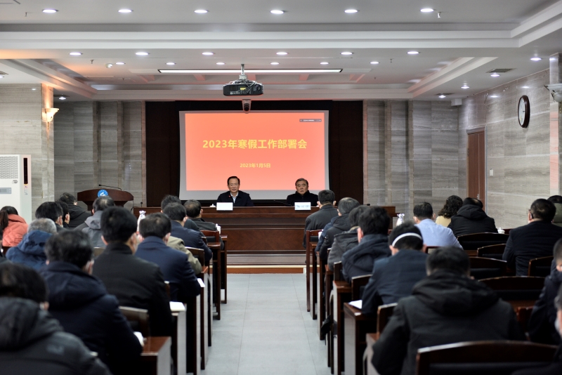 姚庆国从科学谋划2023年工作任务、推动学校“十四五”规划落地落实及做好党建工作、新闻宣传工作、统战工作、正风肃纪工作、学科建设和研究生招生培养、学生教育管理、科技奖励和科研项目申报准备、人事人才工作、中外合作办学、合作交流和校友工作、走访慰问工作、服务保障工作、安全工作和假期值班工作、校区工作等24个方面,对学校2023年寒假期间重点工作进行了安排部署。