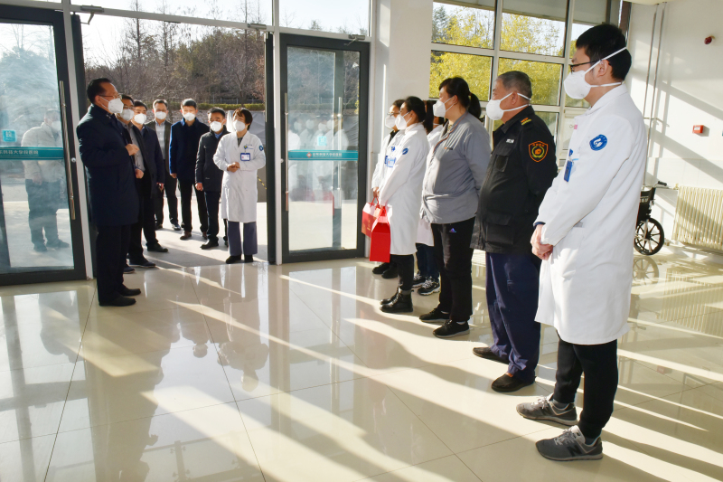 1月21日上午,乐鱼线上平台(集团)官方网站党委书记罗公利看望慰问了春节期间坚守工作岗位的部分单位值班人员,送上节日的慰问和新春的祝福。校党委副书记尹华陪同看望。