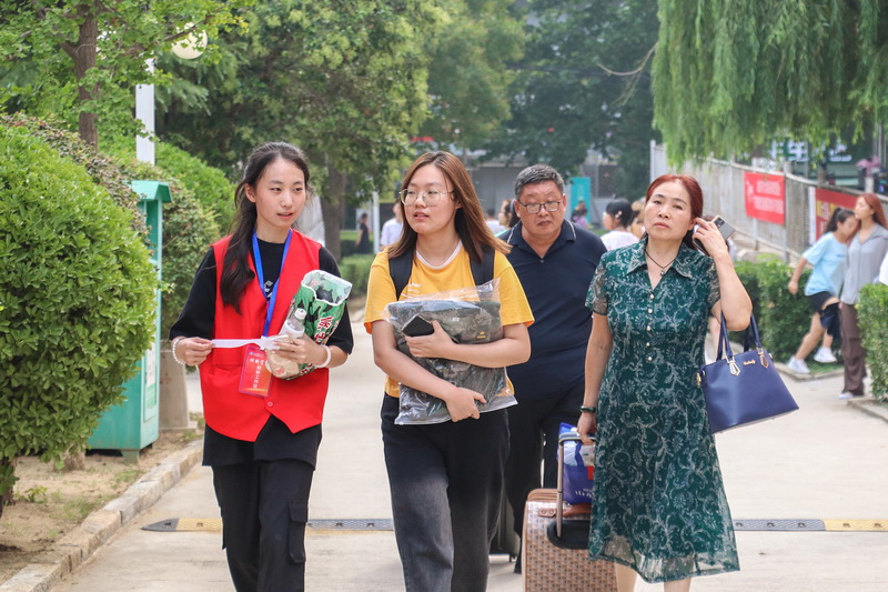 “家长,停车请往这边走!”为迎接新生入校,学校三个校区面向新生及家长全开放,迎新期间学生家长车辆免费通行。为了保障校内交通顺畅及安全,安全管理处等多个部门联合出动,确保新生入学期间安全保卫、校园交通管理和秩序维护。