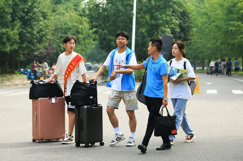 迎新现场,随处可见的志愿者们以饱满的热情迎接新生、积极协助新生搬运行李,为新生答疑解惑;校内还设置了摆渡车和行李搬运车,从校门口直达迎新点,打通新生报到的“最后一公里”;“刷脸”报到,入学核验“一站式”全部解决;各学院迎新服务队忙碌地为新生办理入学手续,实现入学注册“一条龙”,全程只要2分钟……一系列暖心又走心的迎新举措,成为新生们的“独家记忆”。