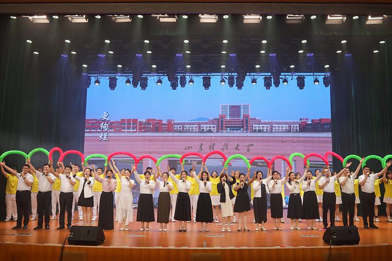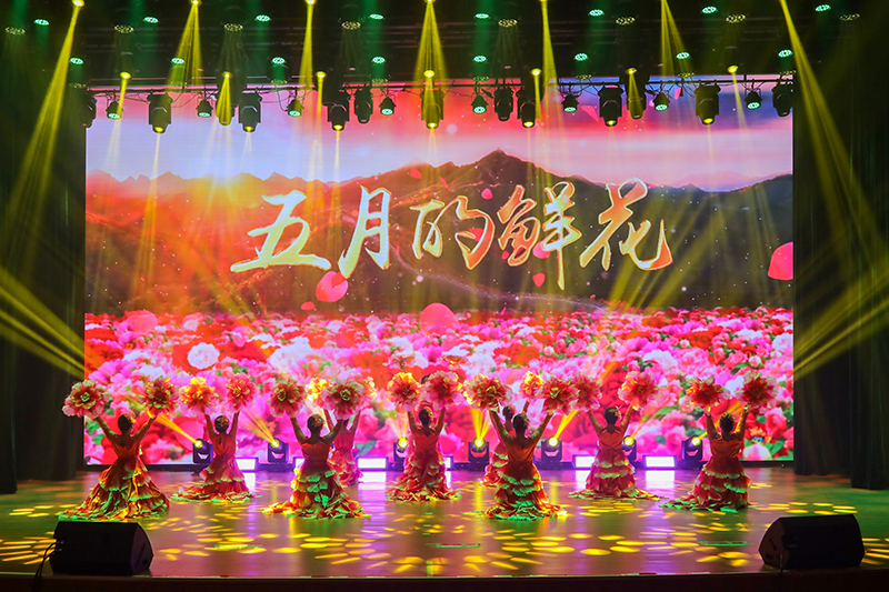 文艺晚会分为“信仰之名”“科技之光”“实践之路”“青春之美”四个篇章,以多彩歌舞、音乐剧、舞台剧、励志朗诵等节目展示了我校青年学子蓬勃向上的奋斗姿态。合唱《如愿》、歌舞《多彩科大人》,唱出信仰之力量,舞出青春之多彩;音乐剧《创新有我》,讲述科大青年不畏困难,勇攀创新高峰的拼搏故事;舞台剧《为爱出发》,呼吁青年投身实践,以小爱推动大爱;山科版《上春山》由各学院团委书记和同学们共同演绎,优美歌声唱出春日美景,动感舞蹈尽显青春绚烂;合唱朗诵《青春》,倡导吾辈青年以青春之风,助燃时代之火焰;乐声响起,演职人员纷纷走上舞台合唱《光荣啊,中国共青团》,为晚会画上完美的句号。