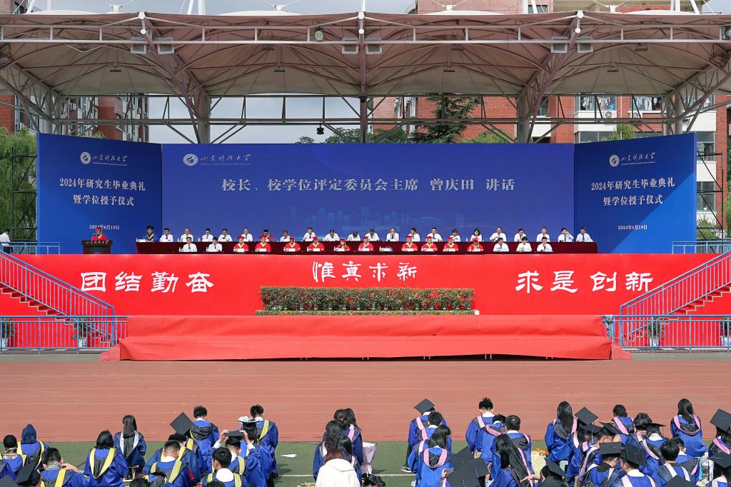 临别之际,曾庆田动情回顾了毕业生们的求学生涯:“在过去,你们与山科一起,秉持谋人民幸福、民族复兴之初心,迎时代之变;在过去,你们与山科一起,秉持育栋梁之才、时代新人之本心,迎学校之变;在过去,你们与山科一起,秉持砺进取品格、过硬本领之恒心,迎成长之变。”他叮嘱毕业生们,在变动不居的人生旅程中,需要辩证地审视变与不变的关系,以笃定不移、恪守不渝的决心,标定自己的人生航向。