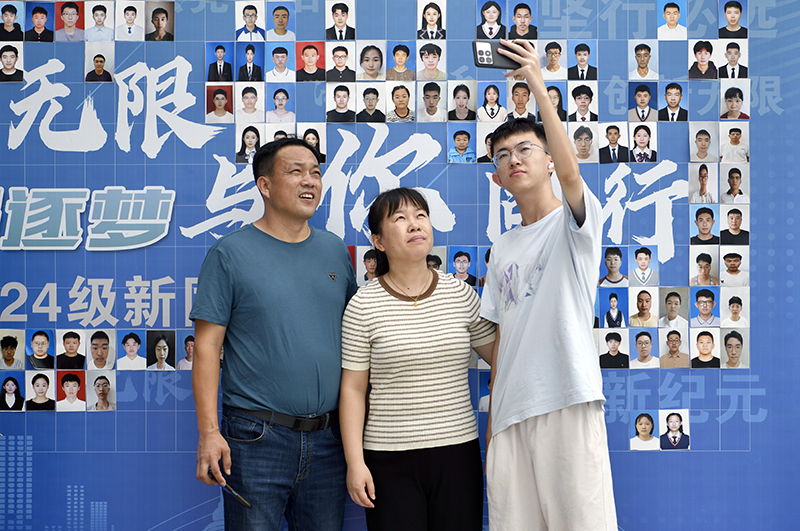 新生与家人合影留念