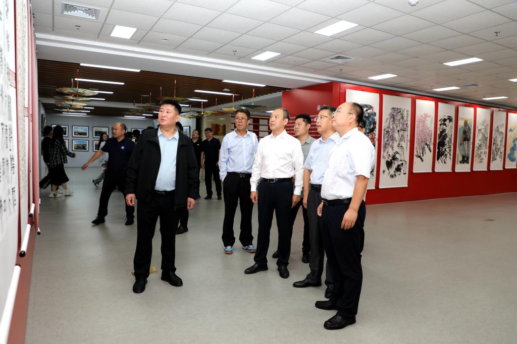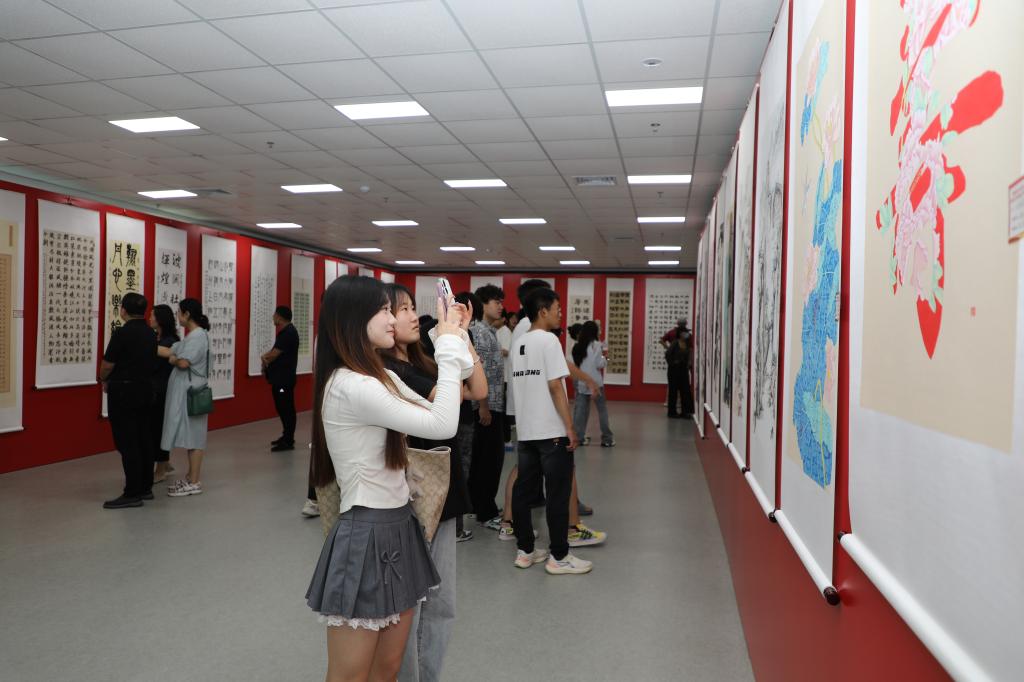 西海岸新区教育文联代表,学校各部门、各单位负责人、校文联书协、美协会员代表,学校师生代表参加开幕式并参观画展。(记者:郭菁荔 责编:信永华)