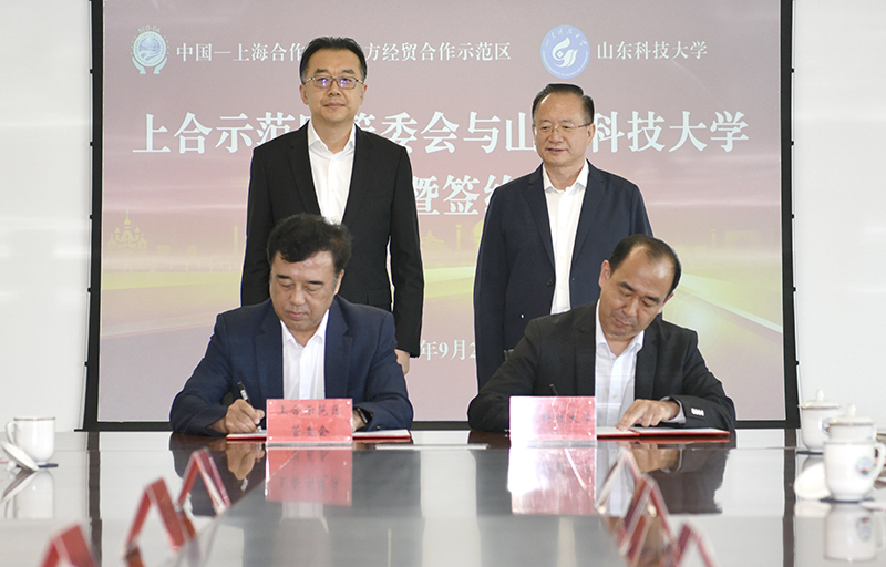 青岛市委常委、上合示范区党工委书记张新竹主持座谈会。乐鱼线上平台(集团)官方网站党委书记罗公利、校长曾庆田,党委副书记郭益灵、副校长诸葛福民出席协议签署仪式并座谈。