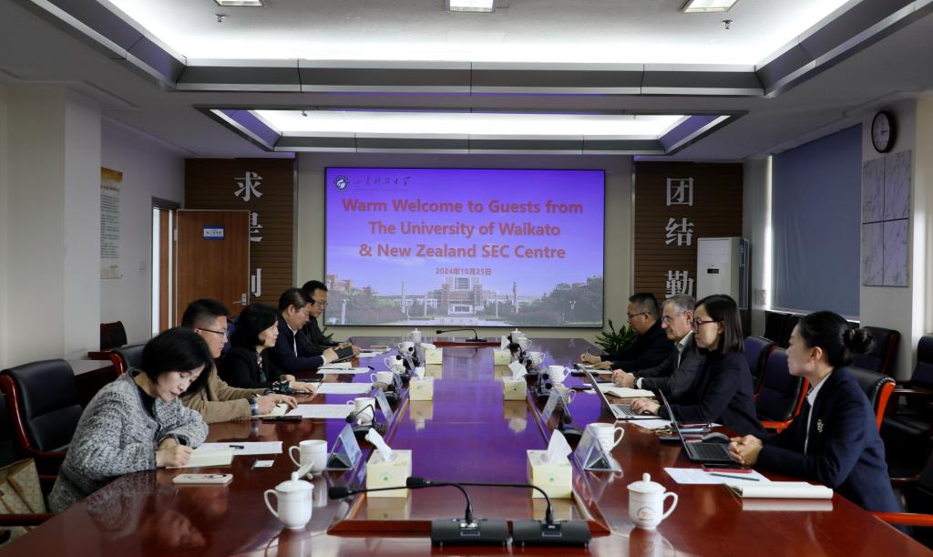 来访期间,Alister Jones一行还访问了文法学院并与学院负责人进行交流,双方就法学专业学生赴怀卡托大学进行访学、参加联合培养等达成共识。(供稿:国际交流合作处 摄影:郭菁荔 责编:徐展)