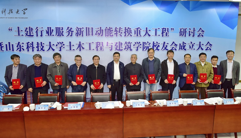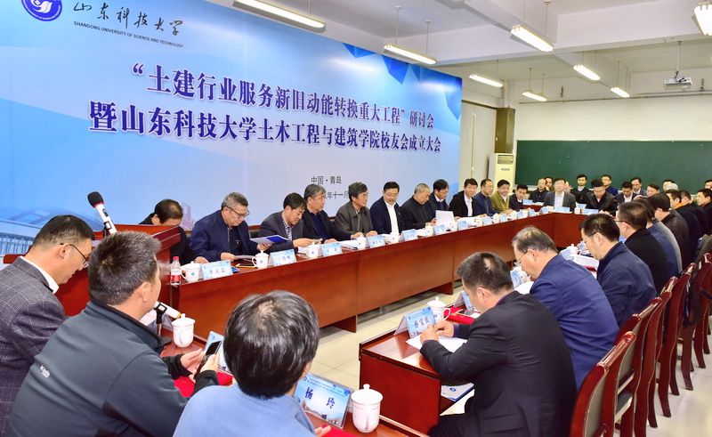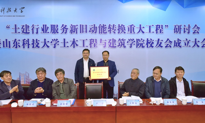 11月11日,“土建行业服务新旧动能转换重大工程”研讨会暨土建学院校友会成立大会在我校召开。校党委副书记尹华出席会议,为土建学院校友会授牌并讲话。