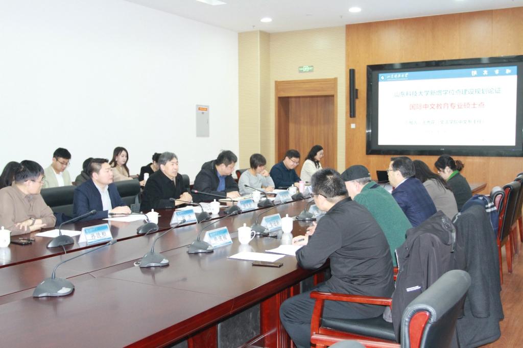 全国国际中文教育专业学位教育指导委员会副主任委员、北京师范大学博士生导师刘利教授,全国国际中文教育专业学位教育指导委员会委员、青岛大学国际教育学院史冠新教授,中国石油大学国际中文教育学位点负责人沈壮娟教授,青岛理工大学人文与外国语学院副院长张成福,科大讯飞高级教育研究员朱慧组成专家组对国际中文教育硕士专业学位授权点进行建设规划论证。