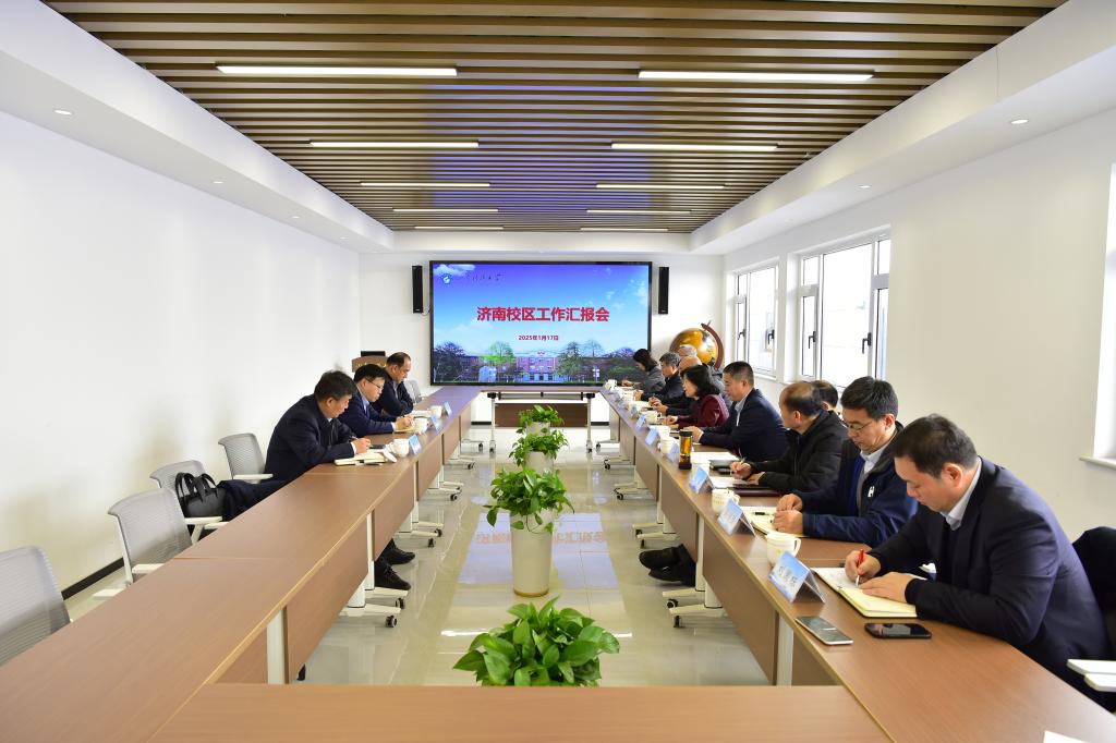 1月17日,校党委书记王君松、校长曾庆田到济南校区调研指导工作,听取校区工作汇报。校党委副书记兼济南校区党委书记、管委主任郭益灵主持汇报会。