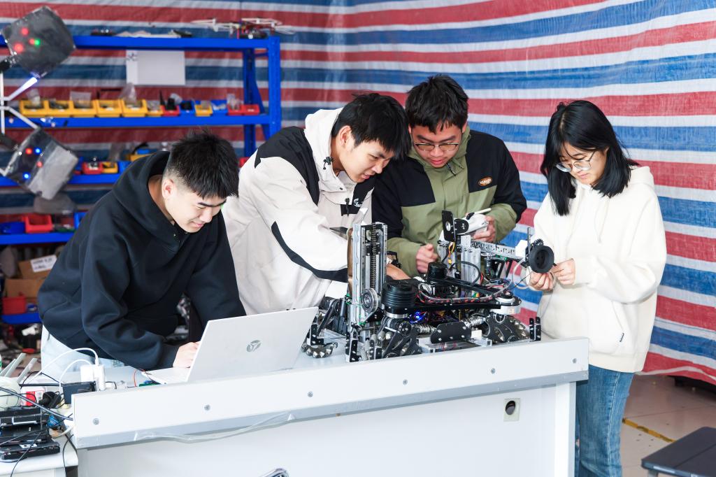 Smart Robot机器人战队的队员们在推进科创竞赛作品研发