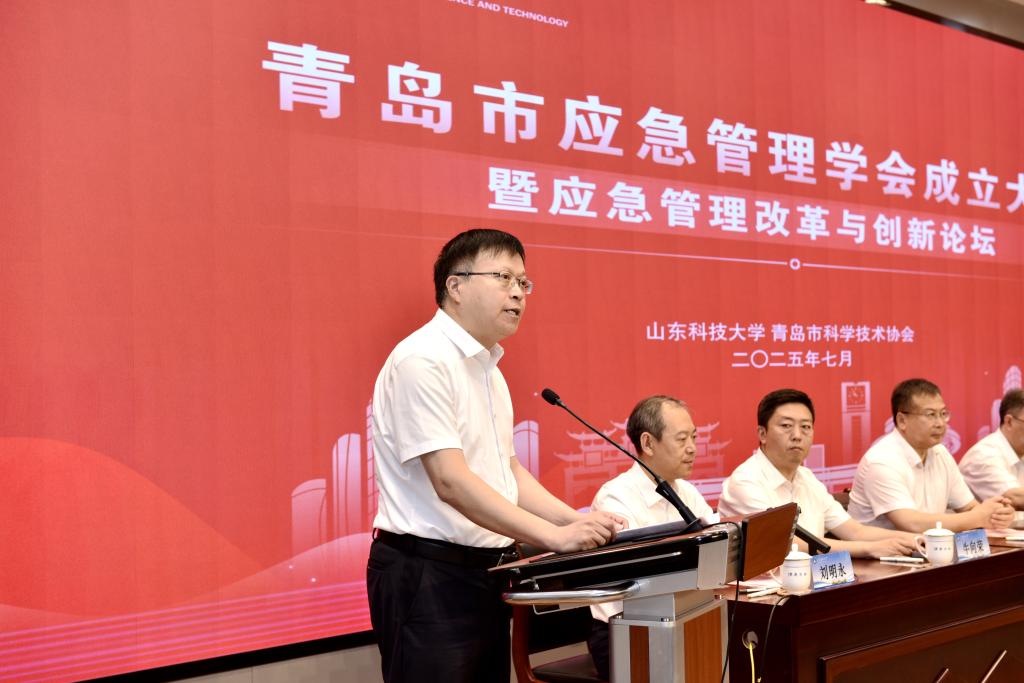 7月5日,青岛市应急管理学会成立大会暨应急管理改革与创新论坛在我校举办。校党委书记王君松出席会议并致辞,校长曾庆田作主旨报告。党委副书记刘明永,党委常委、宣传部部长李克周,马克思主义学院党委书记徐波分别主持会议相关阶段。