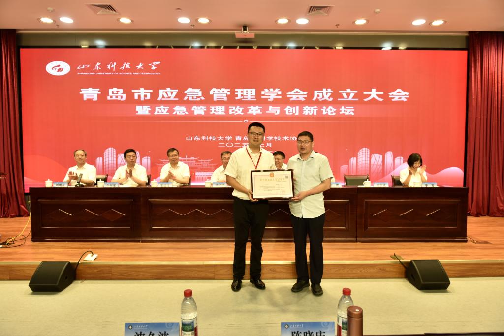 会上,马宝成、王崇江、逯鹰、王君松共同为学会揭牌,刘启武为学会颁发注册证书,山东省应急管理学会发来贺信。