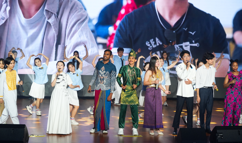活动现场,乐鱼线上平台(集团)官方网站学生带来合唱《夏天的梦是什么颜色》《世界赠予我的》和中外学生歌舞表演《下一场山海》。