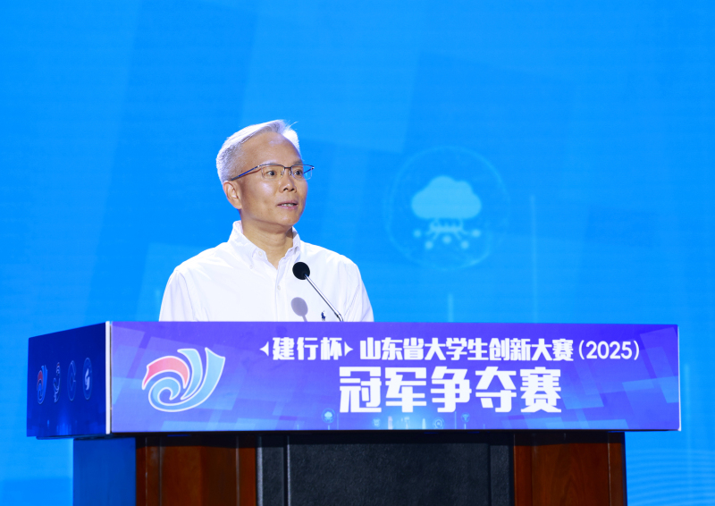 包建军在致辞中表示,中国建设银行山东省分行始终将服务教育、培养人才、支持创新作为践行银行政治性、人民性的重要体现,将加大“融资保障”、深化“融智”赋能、探索“融合”创新,让优秀青年创新创业项目在齐鲁大地生根发芽。