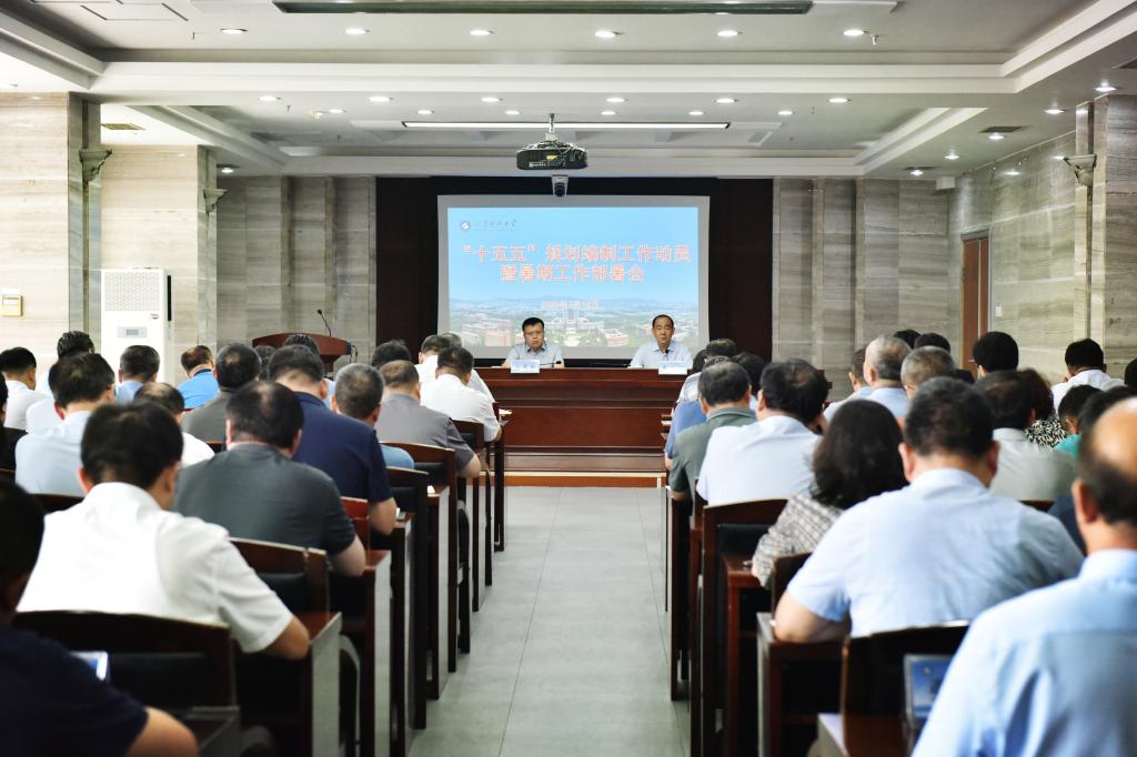 7月18日,学校召开“十五五”规划编制工作动员暨暑期工作部署会。校党委书记王君松主持会议并讲话,校长曾庆田作“十五五”规划编制工作和暑期主要工作部署,校党委领导班子成员出席会议。