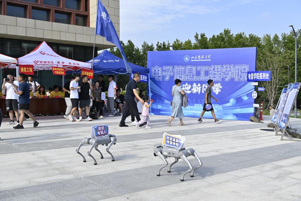 电信学院开启“姓名铸院·星河共聚”活动,用学生姓名拼绘出“电信”学院名,营造出“星河聚名”的参与感,还有“机器狗热舞秀”,科技感与趣味性拉满,点燃现场迎新氛围;自动化学院则让机器人战队精彩亮相,直观呈现专业特色;数学学院结合学院“数导小π”AI辅导员智能体,推出“彩丝缠线”数据可视化互动小游戏,为新生打造了别开生面的入学体验……