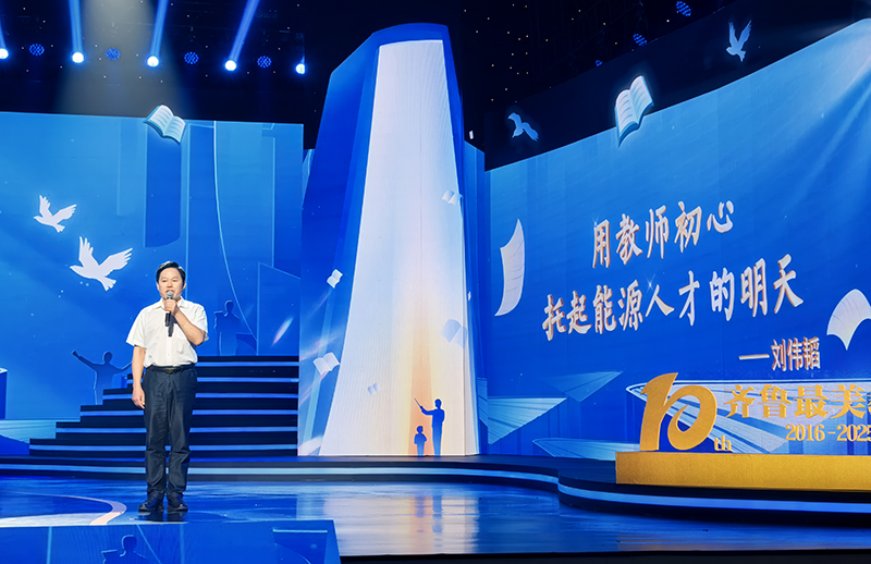 在第41个教师节来临之际,2025年“齐鲁最美教师”发布仪式在济南举行。我校能源与矿业工程学院刘伟韬教授获评“齐鲁最美教师”荣誉称号并上台领奖。