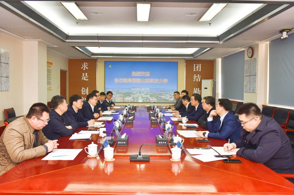 王君松对管学锋一行的到来表示欢迎,从学科建设、人才培养、科技转化、校地及校企合作等方面介绍了学校近期发展情况。他表示,希望双方在党建工作、学生就业、科研成果转化、创新平台建设、算力中心建设等方面进一步加强交流,全方位推进校企合作,实现双方优势互补、共同发展。