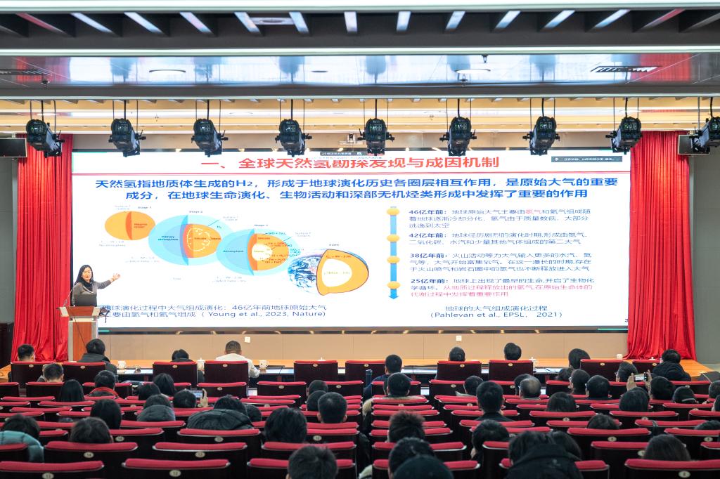 地学高端学术论坛上,刘泉声院士、陈衍景院士分别作题为《二氧化碳矿化封存同步产氢研究进展与设想》《秦岭三叠纪构造背景:碰撞后还是碰撞前?》的主旨报告。东北石油大学柳波教授、崂山实验室刘传周研究员等11位学者围绕页岩油气、天然氢、深部地质、地质灾害防治、文化遗产保护等前沿方向作了学术分享。