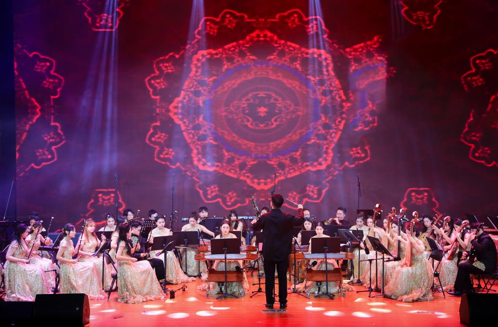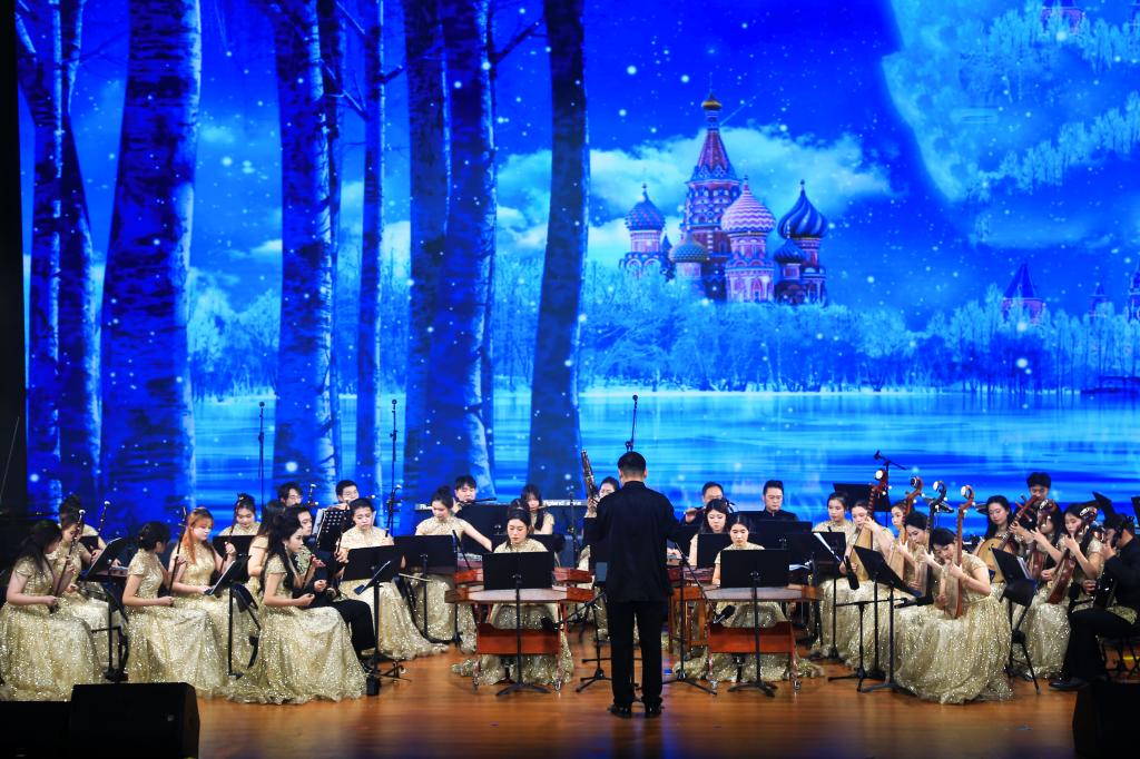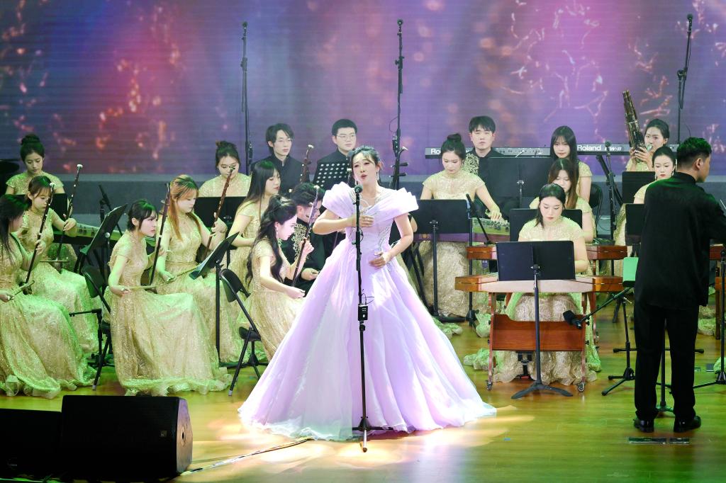 音乐会在热情澎湃的《欢庆序曲》中正式启幕。金晶民族乐团带来的《卡林卡》以铿锵鼓乐与欢快旋律率先点燃现场,奏响了学校七十五载砥砺前行、与国家同频共振的壮阔征程;女声独唱《九儿》在民乐的深情烘托下,吟唱出深沉坚韧的生命力量与民族气韵;合唱《兰亭序》创新融合合唱与民乐,再现千年文脉的墨韵风华,尽显东方美学意境;民乐合奏《偷功》节奏明快、气势如虹,展现了山科人锐意进取、一往无前的奋斗姿态;《沁园春·雪》以豪迈歌声绘就壮丽山河,抒发出“还看今朝”的澎湃自信;《知否知否》则用温婉声线勾勒出一幅诗意画卷,传递出对美好岁月的深深眷恋。