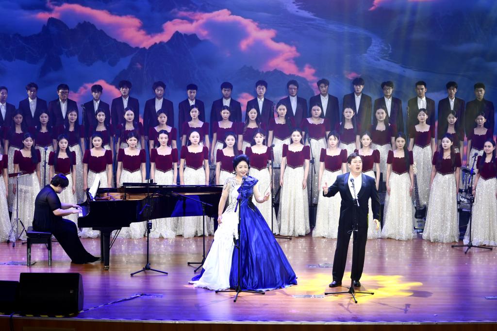 音乐会既回溯历史,也紧扣当下与未来。合唱《想见你》深情表达了母校与学子之间双向奔赴的牵挂与温情;《东方红》《唱支山歌给党听》等经典管乐作品,以饱满的情感唤起深沉的家国记忆与坚定的信仰力量;《康康舞曲》以轻快活泼的节奏点燃全场欢快气氛;《北京喜讯到边寨》则以热烈欢腾的旋律,象征学校各项事业捷报频传、硕果累累的喜人景象;歌曲《海阔天空》唱出了对理想的无悔追求与对未来的无限憧憬,引发强烈共鸣。音乐会在深情与磅礴交织的合唱《山河已无恙&爱永在》中达到情感高潮,为演出画上圆满句号。