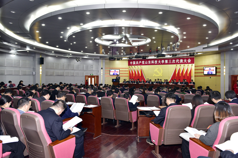 王久军代表青岛市委、市政府对大会的召开表示热烈祝贺,对学校第二次党代会以来各项事业开创的新局面、为全省特别是青岛市经济社会发展做出的贡献表示感谢,希望学校以第三次党代会的召开为契机,全面加强党的领导,培养德智体美劳全面发展的中国特色社会主义建设者和接班人;对标先进谋发展,不断提高综合实力和核心竞争力;不断提高科技创新能力和社会服务水平,更好地服务地方经济发展。
