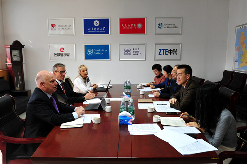 国际交流合作处处长赵向东和济南校区管委会、财经系、合作办学办公室相关负责人陪同会见。(济南校区供稿 摄影:云兵兵 责编:徐展)