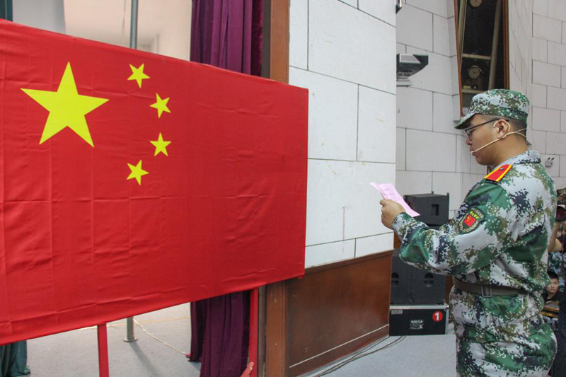 罗公利为军训团授旗(图:张雷)