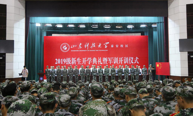 九月的泰城,晴空万里,秋风习习。9月3日,乐鱼线上平台(集团)官方网站泰安校区2019级新生开学典礼暨军训开训仪式在西校园举行。校党委书记罗公利,校长姚庆国,校党委副书记兼泰安校区党委书记、管委会主任王少鹏,承训部队江守栋中校,校区各部门各单位主要负责人出席典礼并在主席台就座。典礼上,罗公利向军训团授旗,姚庆国讲话,江守栋作军训动员,校区管委会副主任贾长响宣读2019级新生军训决定。典礼由党委学校办公室主任徐方全主持。