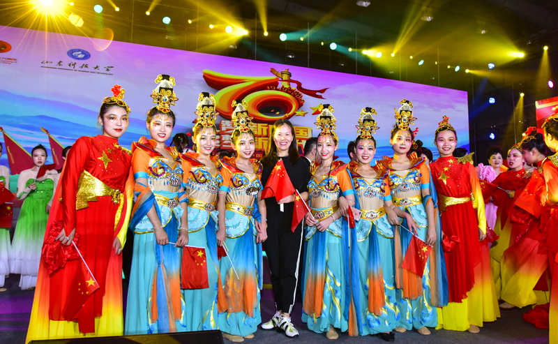 节目精彩纷呈,有的让人兴致盎然,有的让人感动落泪,有的让人激情澎湃,赢得现场观众阵阵掌声……师生在热烈的氛围感染下,全场起立合唱《歌唱祖国》,师生们挥舞着手中的五星红旗,表达对祖国母亲最真挚的生日祝福,唱出对新中国成立70周年的美好祝愿,用青春告白祖国,现场汇成一片红色的海洋。