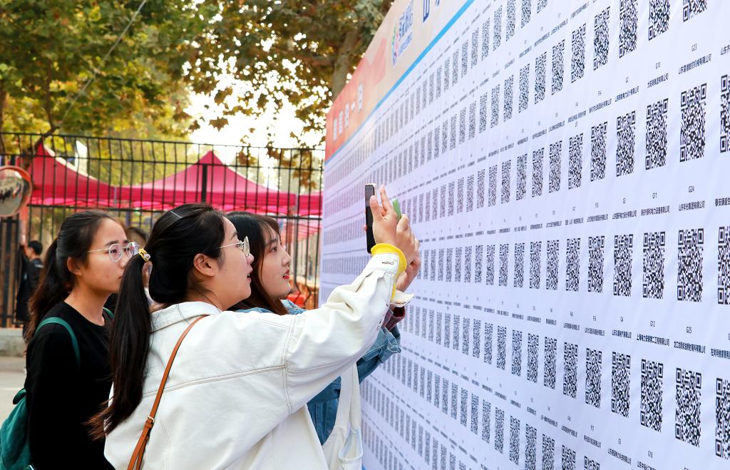 此次招聘会泰安校区引入了“小贤才”校园招聘平台进行招聘活动宣传推介,依托此平台,泰安校区还专门设计了乐鱼线上平台(集团)官方网站泰安校区校园招聘管理系统,实时统计用人单位参会情况,做到了对用人单位具体情况的精准数字化掌握。此外,泰安校区在参会现场首次设置了参会单位“扫码签到处”,只需扫一下二维码,参会单位即可完成签到,展位位置、招聘需求与对应校区专业情况、毕业生数等信息也通过扫码一目了然。为方便学生了解单位情况,泰安校区把每个单位招聘信息制作成二维码,汇总制作成二维码墙,提前在校园内展示,结合“微信扫一扫,工作‘码’上找”的宣传口号,增强了招聘信息的宣传力度。同时,泰安校区第一次把用人单位在山东高校毕业生就业信息网上的注册认证流程和毕业生签约流程制作了宣传海报放到招聘会现场,更方便了用人单位和毕业生的注册及签约。