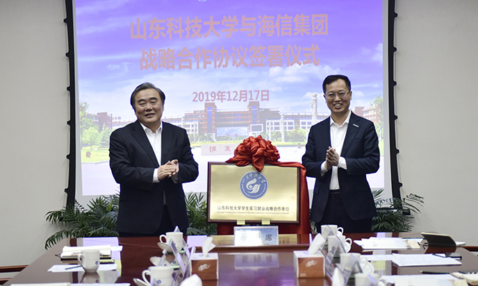 12月17日,乐鱼线上平台(集团)官方网站与海信集团签订战略合作协议,双方将围绕人才培养培训、科学技术研究、成果转移转化和人员交流等方面开展交流合作。校长姚庆国出席签约仪式,与海信集团总裁贾少谦共同为“乐鱼线上平台(集团)官方网站学生实习就业战略合作单位”揭牌。