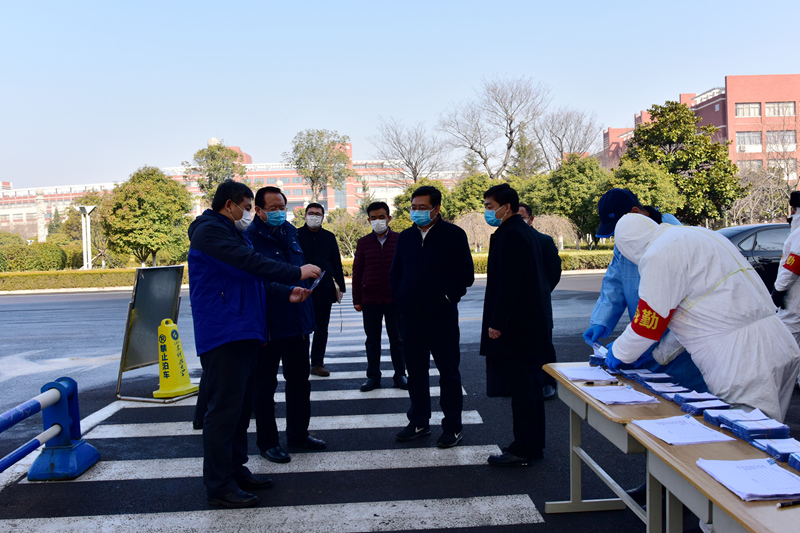 罗公利、尹华一行先后到校南门、9号教学楼、11号教学楼、S1实验楼、教工餐厅、便民服务点、校医院、山海花园门口、西大门等防控点检查指导。