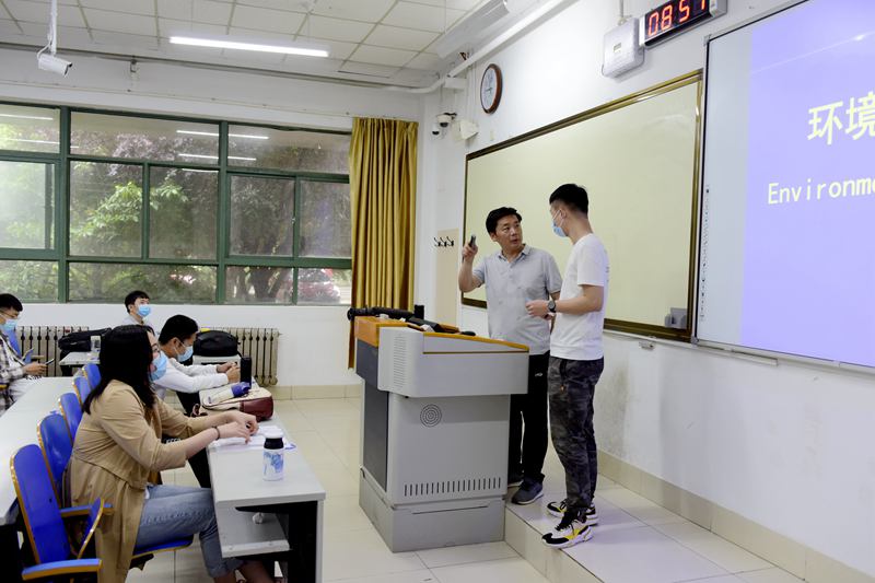 地科学院任加国老师为2017级水文水资源工程专业学生上《环境水文地质学》专业课。他表示:“因为疫情,太久没看见大家了。这回终于和大家见面,感觉师生沟通更高效了。”这个班的学生窦旻玥同学说:“在家时间太长了,看到老师和同学们很激动。总想着和大家多交流交流,也得是按照学校疫情防控要求进行。感觉能来上课,见到同学们,很开心,希望情况越来越好。”