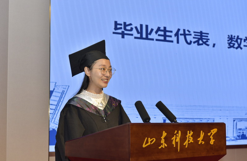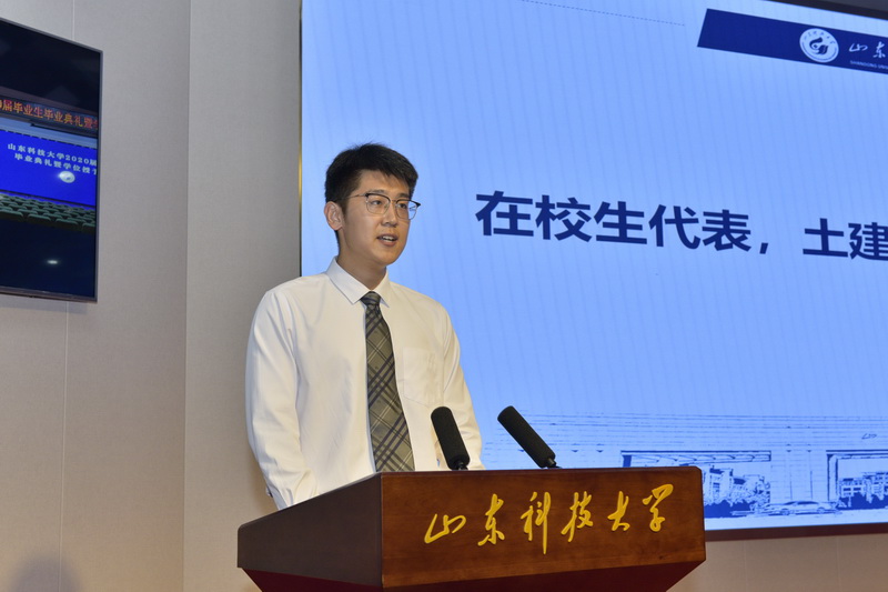 “情深纸短,祝福万千。在此离别之际,真诚地祝愿母校蓬勃发展,再见了,亲爱的母校!”“祝愿学长学姐们平安快乐、前程似锦”毕生生代表数学学院孙瑜徽、在校生代表土建学院王家轩先后发言。经管学院王炳成作为教师代表勉励毕业生“且努力,完成我们的事业,祝愿亲爱的同学们前程锦绣!”